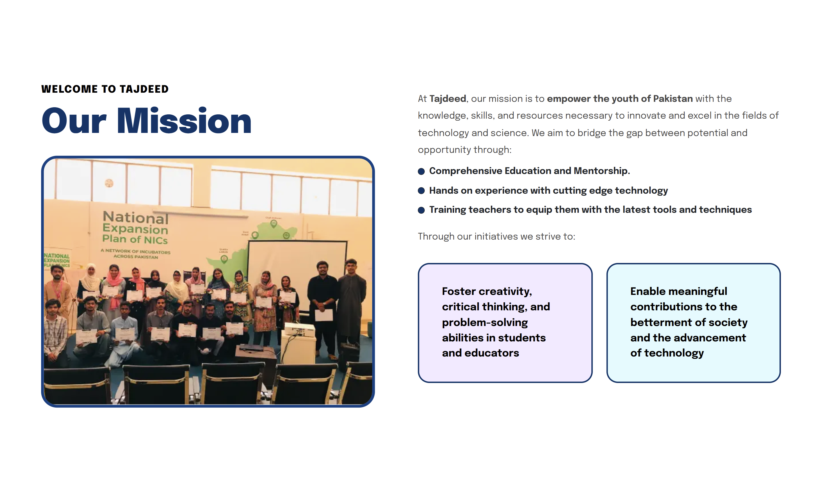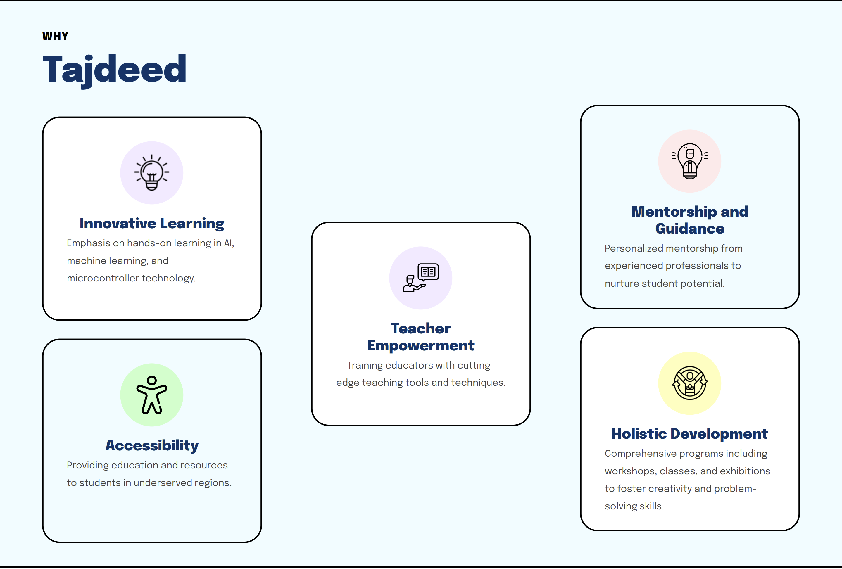 A responsive landing page for Tajdeed, showcasing their STEAM education products and services with modern design elements.